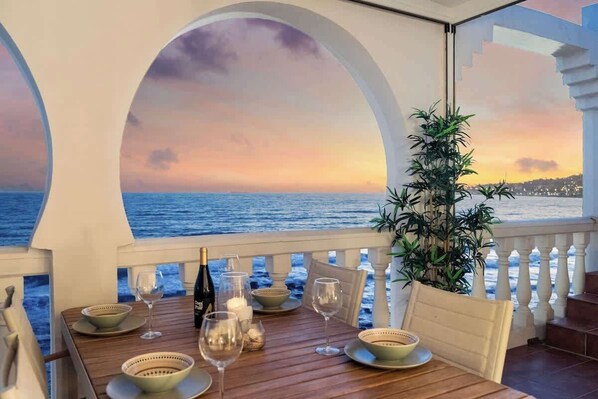 Begin your mornings with freshly brewed coffee and breakfast on the elegant glazed terrace, accompanied by the soothing sound of the waves.