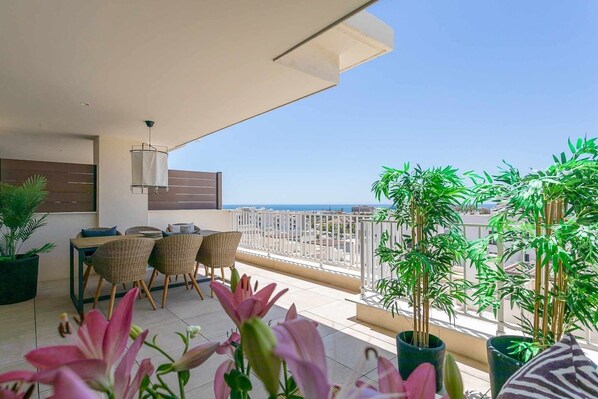 The terrace is the absolute highlight, with bi-folding doors, enabling you to open up the entire apartment to the outside. The views are fantastic and the outdoor furniture is of exceptional quality, so you can dine or relax at all times of day.