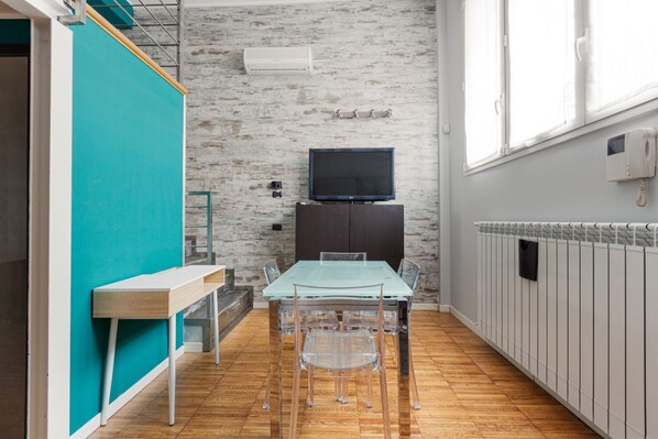 Modern 30 sqm studio apartment, ideal for 2 people, located on the ground floor of a building WITHOUT a lift (one step down to access it).The property is located in the Gorla district, full of all services and well connected thanks to local public transp