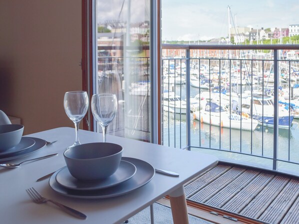 Separate Toilet.. Gas central heating, electricity, bed linen, towels and Wi-Fi included. Balcony.. Prvate parking for 2 cars. No smoking.. Discover all that Marina Retreat has to offer, set in a truly wonderful location within Milford Haven Marina, boasting picture postcard views from your open plan living, dining and kitchen area over the marina, where you can relax and watch the comings and goings of boats and yachts from your bedroom. You can enjoy views over the ever changing Milford Haven waterway, after a busy day exploring the area enjoy an evening stroll along the marina for a choice of restaurants offering a selection of fresh fish and locally brewed ales right on your doorstep and a further 10 minute walk takes you into Milford Haven with a selection of grocery shops, café and even a theatre.