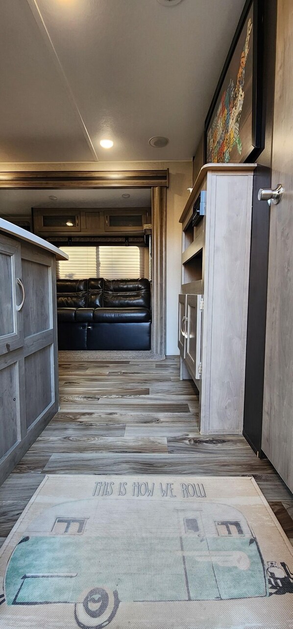 Ever dreamed of RV camping? Experience the freedom with The Puma travel trailer, perfect for larger families. With a queen bed, two upper twin bunks and a double fold out lower bunk in the second bedroom, plus a fold out couch and dinette sleeper, it comfortably sleeps 8. Unwind outdoors with picnic table and fire pit or relax inside where you'll find AC/heat and two kitchenettes.