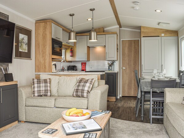 On the shores of Butlins Minehead, Deep Cove Caravan offers a lakeside retreat perfect for your next family break. Enjoy open-plan living with Smart TVs, French doors leading to decking, and a well-equipped kitchen. Take advantage of private parking and unwind in the garden with patio furniture.