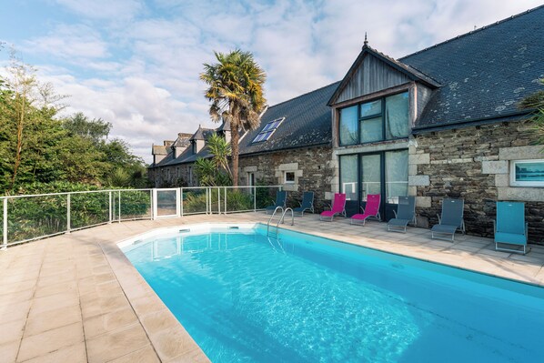 Hotel Kastell Dinec'h blends countryside charm with modern amenities. Guests enjoy a buffet breakfast, relax on the sunny terrace, and cool off in the seasonal pool. Each room includes WiFi, keeping you connected in a tranquil setting.