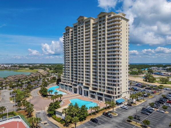 Located in Seascape Resort, Ariel Dunes II offers 24 stories of amazing westward views that span the sugar white sands and emerald green water of Miramar Beach. From the rear of the building, you get a bird's eye view of the lush 18-hole Seascape Golf Course. Ariel Dunes II features three large pools, one with zero entry and a spacious deck for lounging and catching some rays.