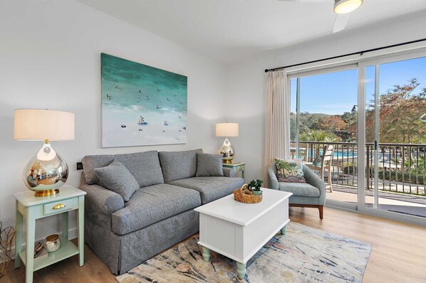 -Living Room: Queen sleeper sofa for additional sleeping space