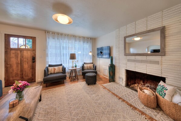 Desert Gardens #1 is a unique and exceptional downtown property that provides both an ideal downtown location as well as a spacious garden setting.This unit features 2 bed, 1 bath and the bed configuration is as follows: 1 King Bed in the main bedroom and two twin size beds in the second bedroom. The kitchen is fully stocked with utensils and small appliances. All you need is food or walk across the street to Thai Bella and have a fabulous meal! The living rooms feature Samsung smart tv's so Netflix and other tv apps are available.