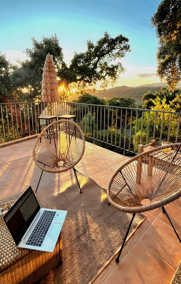 Located between Caldas de Monchique and Monchique, Õku Forest House is a spacious 350 m² villa ideal for up to 12 guests. It features 4 bedrooms and 4 bathrooms, providing comfortable, quality accommodation for your group. The house offers a fully equipped high-end kitchen, a living room with fireplace, and a south-facing terrace with stunning mountain and sea views. Bedrooms have air conditioning, high-speed Wi-Fi is suitable for video calls, and there is a laundry room and a dedicated workspace for added convenience.