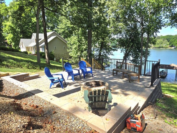 Almost There invites you to unwind in its open-floor plan kitchen, living and dining areas, with a beautiful view of Smith Mountain Lake from the living room. Enjoy your family gatherings around the fire pit or on several levels of outside seating areas for dining and relaxing.