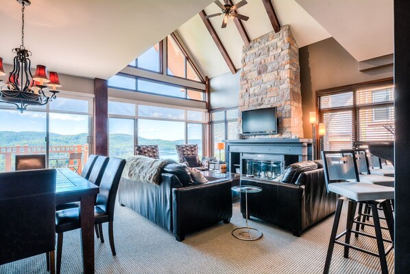 Firstly, the unit itself is fantastic and comfortable, and the walk into the village makes the location very convenient. However, it is important to note that the ski-in/ski-out access was not as convenient as we thought or as described by other reviews. To get to the slopes, you must walk through 2 parking garages roughly 50 yards each in length, and this is tricky using a key to get through doors with ski equipment in hand (using the stairs and path in back of the unit is not really feasible since the stairs are covered in snow). And then, you need to walk up 2 hills, each around 15 feet high, to get to the trail. With ski equipment in hand, this is a challenge to say the least. We were able to do this, but were out of breath by the time we reached the trail to put on our skis. Skiing back in is easier, but still need to walk through the parking garages and doors with ski equipment in hand. Another detail, we were informed a few days before arrival that the hot tub for the building was broken, so we had to walk through these parking garages (and outside for a bit) to get to another building to use their hot tub. This was more annoying than anything else. Otherwise, the unit itself was great and we enjoyed our stay. Another awesome detail: storing skiis and boots in the "mudroom" outside the elevator before entering the unit was great.