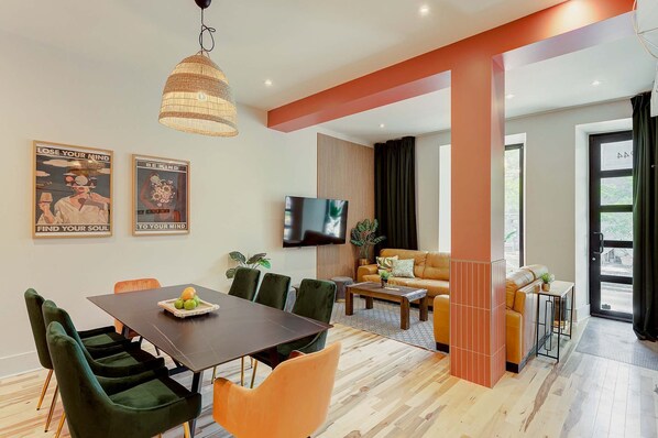 Welcome to this stunning flat, once an art gallery, it's now an inviting space with a unique artistic vibe. Almost at ground level: only 8 steps. Ideally located in the heart of Plateau area steps to downtown. The unit has 6 beds, it can welcome up to 12 people. You'll have a blast with the ping-pong kit and 3 x Roku TVs. Walk score: 100% & great transit options, everything you need is close by: restaurants, bars, cafés, famous bagel shop, food stores and attractions. Contact us!