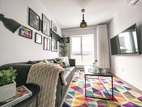 Step into a bright living space designed for comfort, whether you’re working remotely, exploring the city, or enjoying a quiet evening in. The bedroom provides a restful place to unwind with fresh linens, and the bathroom is clean, well-maintained, and stocked with essential toiletries and towels. A well-equipped kitchen makes it easy to prepare meals during your stay.