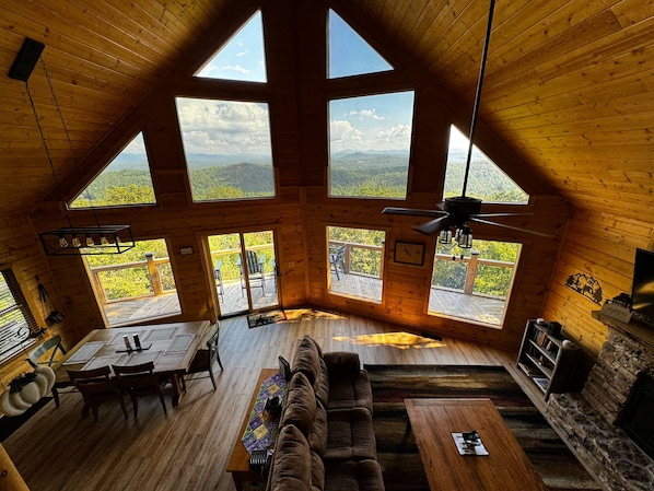 20 minutes from Blue Ridge, Blairsville, and Murphy, NC. Only about 2 hours from the Atlanta metro area. Magnificent views from all 3 stories. 3 bed/3 bath plus bunk beds. 2500 sq ft - Large enough for families but cozy enough for couples.