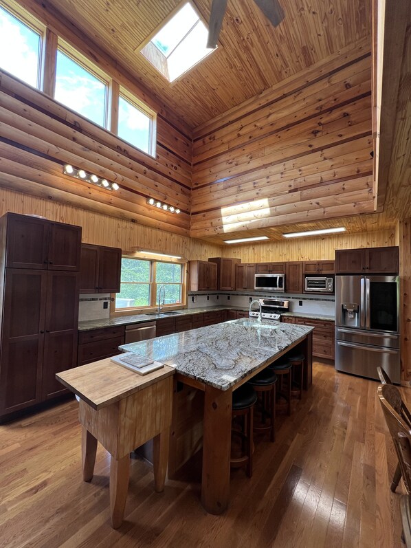 Fridge, microwave, oven, stovetop - Private Cozy Cabin on 165 acres in Poconos. Pool Room, Sauna, Poker, Hunting! (Roaring Brook)