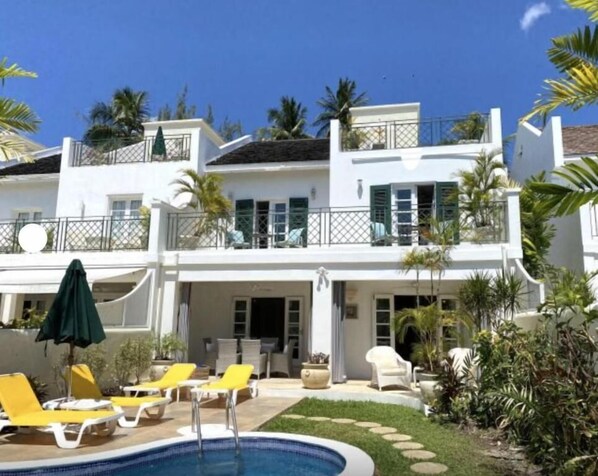 Tradewinds, villa with sea views & pool, 1min walk to beach.