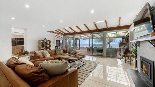 TV, fireplace - Lakehouse 61 - Lake frontage with its own private boat ramp and boat mooring. (Mulwala)