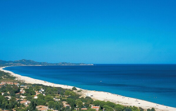 • Aerial view of Villasimius and Porto Giunco beach, Sardinia, Italy