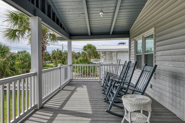 Rating Details: The property manager was very helpful. The vacation rental was spotless. I was very happy with the location. I was very satisfied with the condition of the vacation rental. Overall, I recommend this vacation rental. Reviewer Comments: When my daughter turned 30, instead of a present or party, she wanted to replicate the beach experiences she had enjoyed as a child when my father would rent a beach house for the family. Although her immediate family was present, she also invited some of her friends to the vacation. This house was a pefect fit for us. The open floor plan for the kitchen and den areas invites conversation and congregation, the porches are spacious and well supplied with enough chairs for the whole group, and the kitchen is stocked with cookware for large meals. We spent the week making fancy cocktails, cooking for each other, watching the sunsets over the inlet, and playing beach games. The beach was easily accessible and the fixed and floating docks made outside recreation all the more enjoyable!