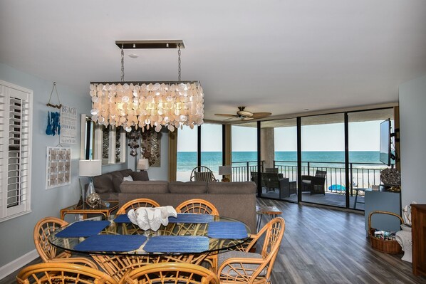 Surfmaster 108 - Three-bedroom, three-bath first-floor oceanfront condo provides a hot tub and more. Stay connected with in-room WiFi.