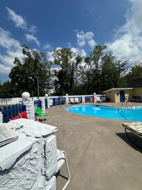 Travelers find a sunny retreat near Broadway at the Beach with easy parking, in-room connectivity, and a seasonal pool for cooling off