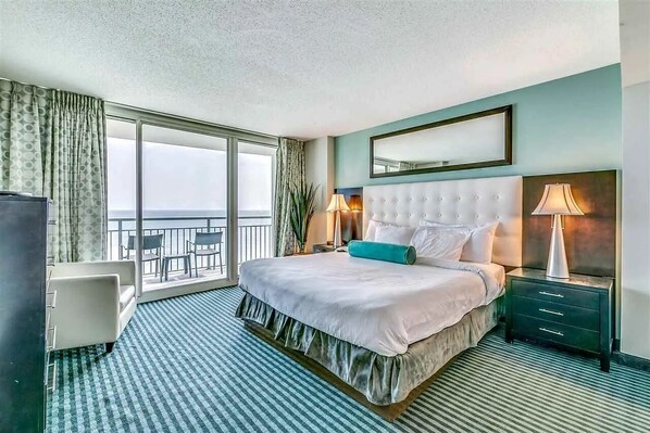 CONDO: 17th-floor unit w/ elevator access, open floor plan, 3 flat-screen TVs, dining table, private balcony w/ ocean views, master w/ en-suite bath, jacuzzi tub & balcony access