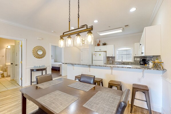 Create your favorite coastal memories at this gorgeous, second-floor condo located in the popular Magnolia North complex! Recently updated and fully furnished, the interior boasts comfortable furnishings, ample natural lighting, and modern amenities. Sit back and visit with your loved ones on the soft seating in the living room as you watch your favorite TV shows and movies. Utilize the full kitchen's granite countertops and updated appliances to whip up culinary creations. And when mealtime rolls around, dine as a family at the formal dining table.