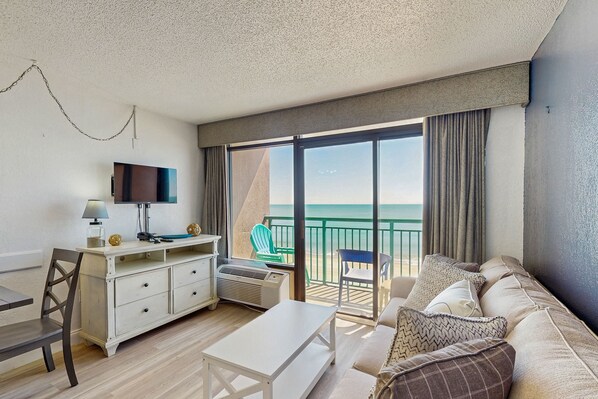 The condo features air conditioning in both the bedroom and living room, ensuring a cool escape from the summer heat. With a fully equipped kitchen, including a fridge, stove, and microwave, you can easily prepare meals or enjoy a barbecue in the picnic area. The kitchen also has a Keurig coffee maker for those early morning sunrises, to which guests will need to supply their own K-cups. The spacious balcony offers breathtaking ocean views, making it an ideal spot for morning coffee or evening sunsets. Although this vacation retreat is located on the 6th floor, you will have direct access to the unit from the parking garage with no need for the elevator!