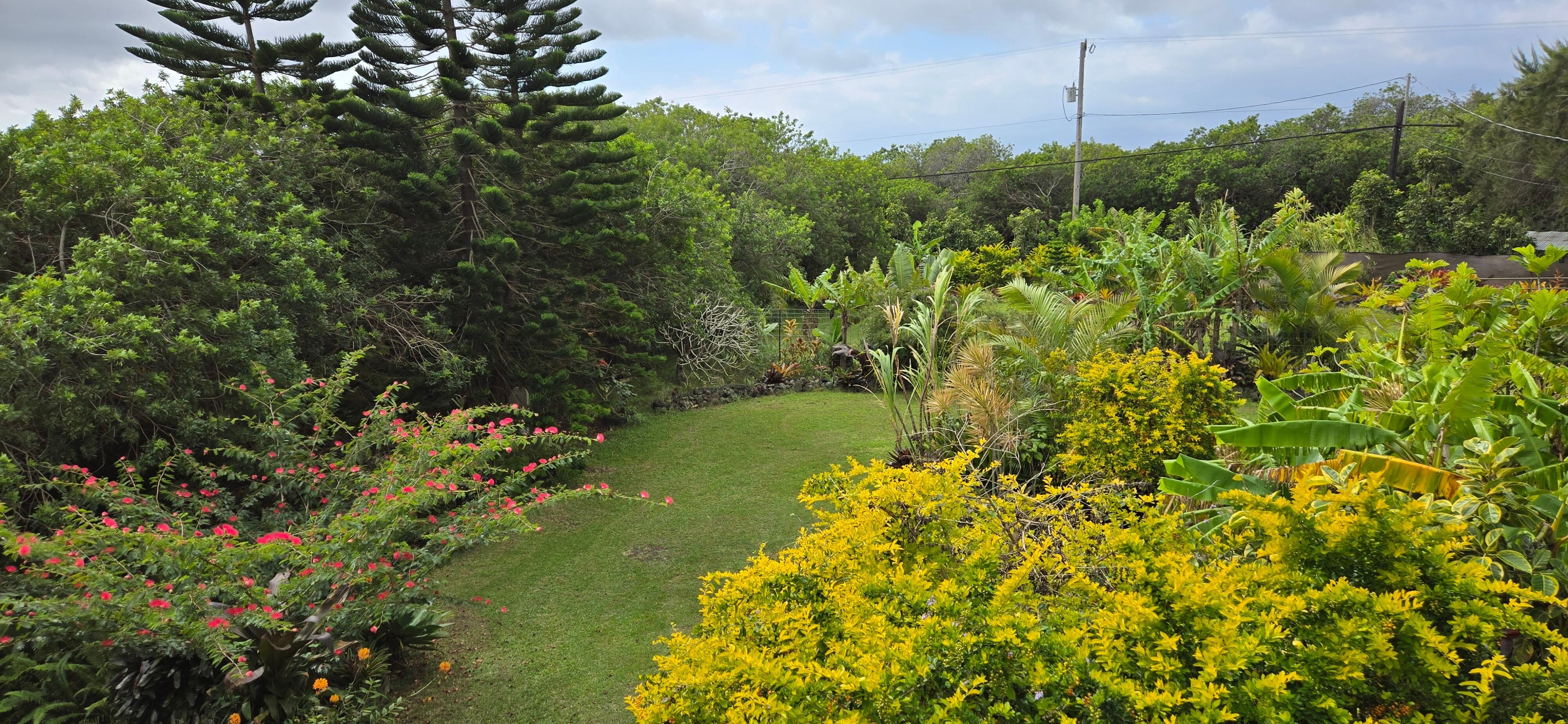 Aloha and welcome to Halawai ( the point where heaven and earth meet), a Sanctuary Oasis on the road to Magical Green Sands Beach in Naalehu, HI. We are located half way between Hilo and Kona on a 3 acre peaceful sanctuary in mystical South Point, Na'alehu Hawaii. This is a great place to have as a base when touring the Southern part of the island. You will love my home, It's bright, clean, comfortable, cheery and filled with Aloha Spirit! Your rental is an entire beautiful, 1 bedroom 1 bath apartment located on the upper floor. There is a grand outdoor staircase to access the upper floor, where you pass through your own private huge Lanai (an outside covered verandah) to relax on and enjoy the herb and flower garden below. You enter the sliding door to a cheery room full of light, good energy, Hawaiian art and colors. For your comfort there is a full kitchen, with cooking and bakeware, an island, stove, microwave, and refrigerator, coffee, tea, creamer, honey, fruit etc. There are also condiments, rice and salad dressings etc in the refrigerator for your useage. The bedroom has a new queen sized memory foam mattress to relax and dream in peaceful ease. The adjoining bath is newly remodeled and stylish, well appointed, and comfortable with bathtub and shower. There is a full size futon sofa if extra sleeping arrangements are needed. For those with chemical sensitivities. We clean with non-toxic old fashioned cleaners and essential oils only. All bedding, mattress are pristinely maintained and pillows and mattress have triple encasement for ultimate cleanliness and comfort. South Point in Hawaiian is known as "Ka Lae" which means "The Point", as its the southern most point of the Hawaiian Kingdom and the whole United States! No light pollution makes for FANTASTIC FOR STAR WATCHING UNDER THE MILKY WAY AND SOUTHERN CROSS!!! South Point is the very place where the first sea faring Polynesians (Hawaiians) came ashore so long ago and the region where the mightiest warrior, King Kamehameha trained in the Hawaiian arts. The land has strong Mana! (energy) On the way to Green Sands Beach you can still see remains of the rock hale's (houses) and stone Heiau's (temples) of these Ancient Hawaiian's. Our Neighborhood (South Point Road) is full of farms growing Macadamia nuts, coffee, and various other offerings. There are 2 first rate quaint coffee shop's in Naalehu to enjoy outstanding Ka'u regional coffee.
