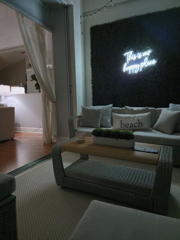 Balcony provides a beautiful view of the Lake and a Western sky view with gorgeous Sunsets. There is also a sitting area in the balcony that is actually indoor/air-conditioned. Mini refrigerator.