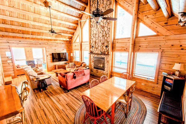 A spectacular, massive, state-of-the-art log cabin that's the perfect getaway for winter ski trips (only 25 minutes to Pleasant Mountain), summer vacations (beaches, water-sports, cookouts galore), & fall gatherings with friends or family. With a chef's kitchen, two ovens, a large dining area, bedrooms for up to 12 (with two king beds), two living rooms, & tons of outdoor dining & relaxation space, there's no gathering this wonderful, warm, gorgeous home can't accommodate!