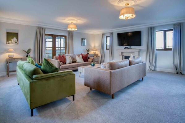 The imperial staircase takes you upstairs onto the landing area again, offering plenty of seating to relax and take in the most breathtaking views over the rolling countryside. The four bedrooms can be found here one of which boasts a king size bed and en-suite bathroom. The remaining three bedrooms host double beds one again benefitting from an en-suite bathroom. All four are exquisitely furnished.