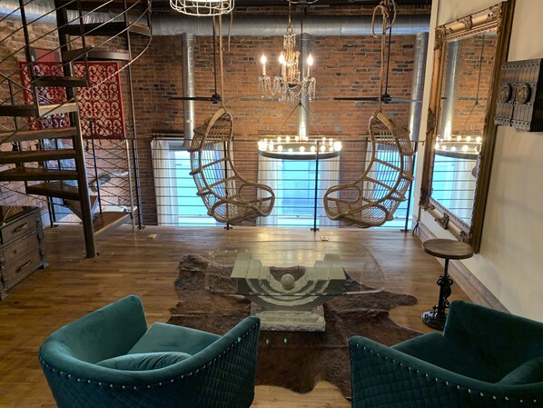 Your loft has a private rooftop deck that only you have access to. It has hanging tea lights for a nice summertime ambience.