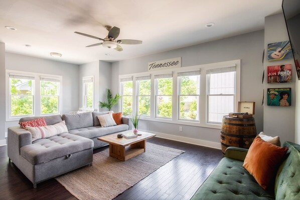 Our home is packed with Nashville inspired artsy features including murals, an artificial hedge wall and a spacious party deck. All while being comfortable and clean, this spot is the place to be for your Nashville getaway!