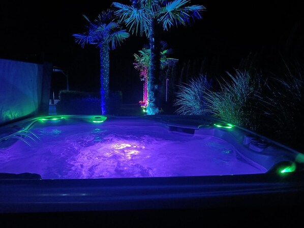 This accommodation offers a private outdoor area with pool, hot tub, garden, open terrace, covered terrace, barbecue and outdoor shower.