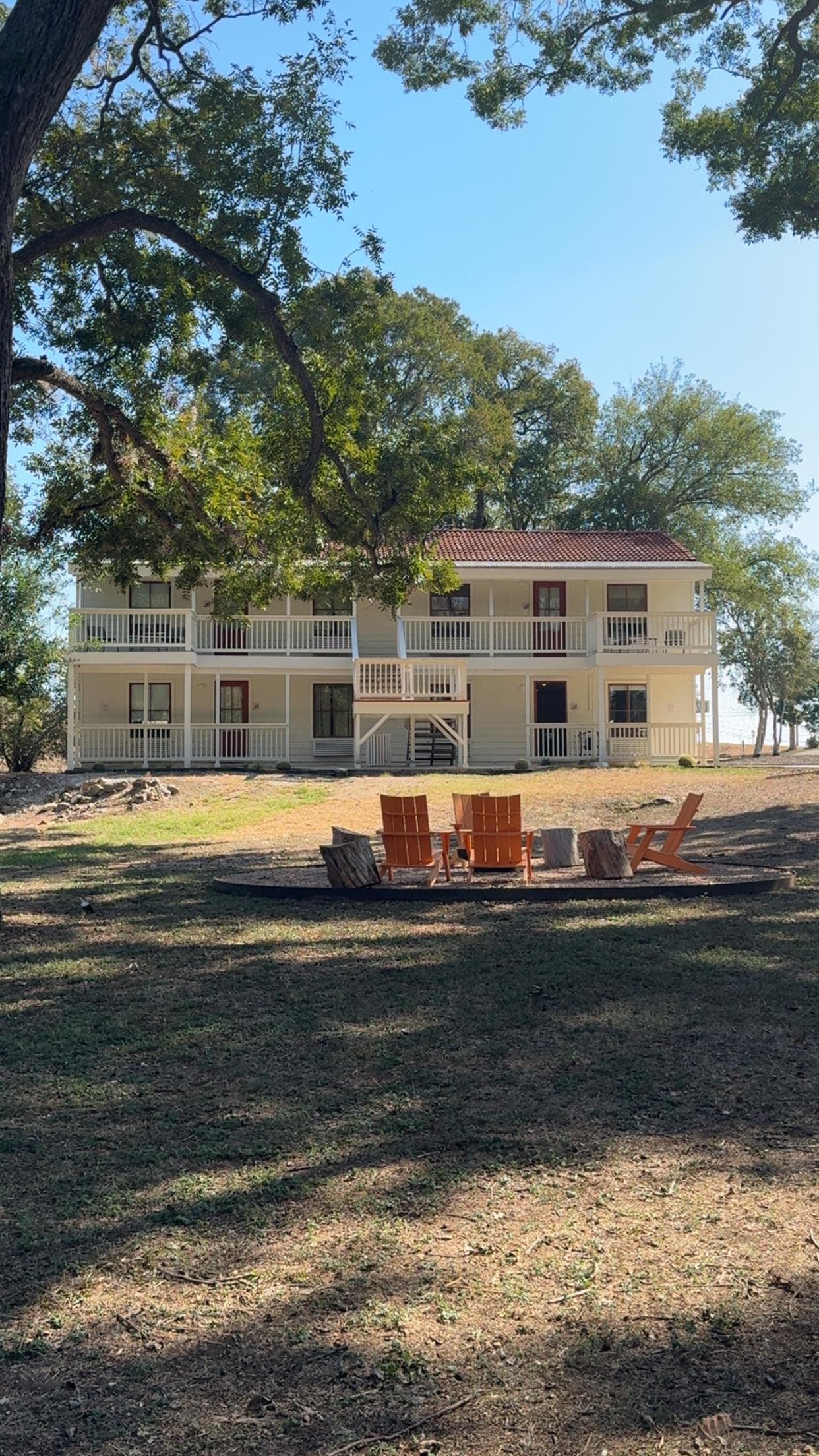 Guests relax in lush gardens or enjoy game nights with billiards and arcade entertainment at this riverside retreat near Comal River