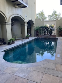 Yes, this property has an outdoor pool. Pool access is from 10 AM to 10 PM.