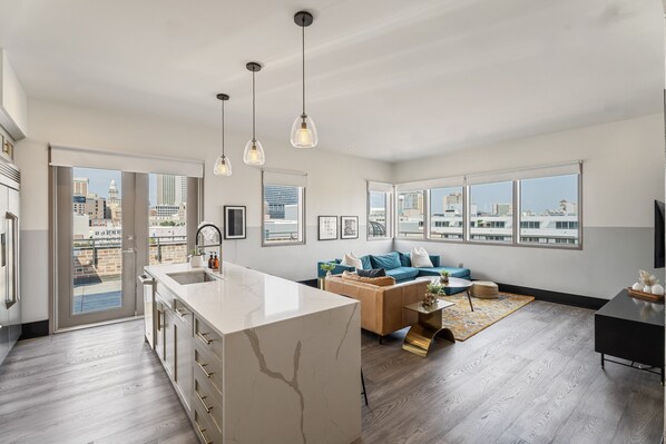 Photo gallery for Corner Penthouse with Private Balcony Amazing Views Chefs Kitchen Spa like Bathroom Hotel