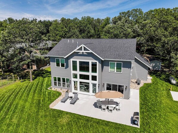 Lakefront Luxury Awaits – Modern 5BR Retreat on Beautiful Rush Lake provides amenities, such as a firepit and laundry facilities. Guests can connect to free in-room WiFi.