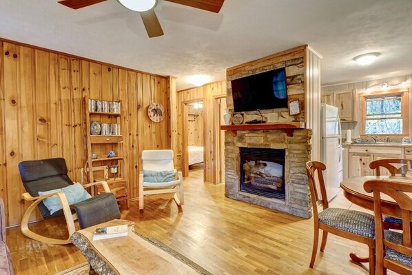 Linville and Wilson Gorges surround this intimate cabin, ideal for adventures or serene relaxation. Unwind on the deck hot tub after hiking to Linville Falls or enjoy board games by the living room fireplace. This pet-friendly retreat features a slow cooker, tea kettle, and first aid kit for your convenience.