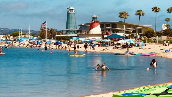 Water and sand 30ft away! - We are on a turning basin fronting the largest Bay Beach in Newport - at 19th St/Marina Park Beaches