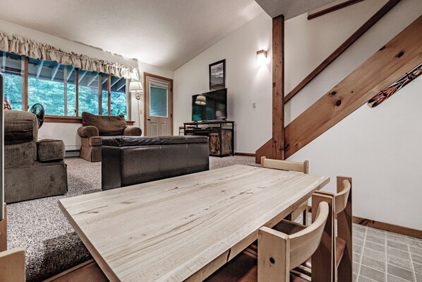 Guests will find Cascades C-6, sleeps 8 comfortably is stylish and updated . Sleek stainless appliances, updated furnishings and fixtures. Upper-level bedroom offers king bed as well 2 sets of twin bunks. Enjoy everything that makes Cascades special including, ski in/ski out right above South Ridge Base Lodge, indoor pool, saunas and jacuzzi, ski storage for guests with direct trail access, coin operated laundry, large common area with views of the pool, perfect for board games, relaxing and reading a book, or catching up with friends. Grab first tracks from right outside the door. Located just above the base lodge, South Ridge, jump on the Chondola or South Ridge Express to access all 8 peaks. Easily ski back to the unit for lunch then head right back out. This unit offers upper-level bedroom, deck, well stocked full kitchen, full bath, sleeping 8.