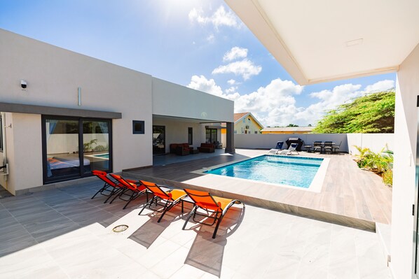 -Private pool, Lounge area, outdoor furniture.