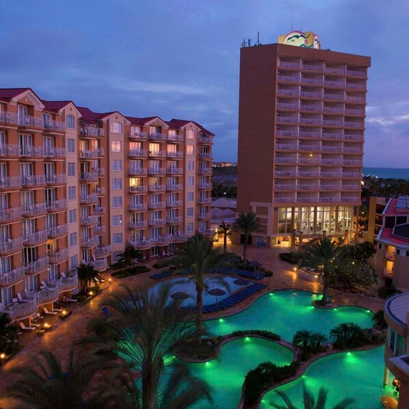 Travelers find their private retreat in this seventh-floor penthouse, with two swimming pools, BBQ areas, and sports courts completing the vacation experience