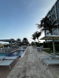 Azure Beach Residences, an upscale retreat with a tropical twist. Enjoy the Caribbean views from your balcony or unwind by the infinity pool and tropical deck. With amenities like a spa, gym, and tennis courts, this condo has everything you need to relax in style.