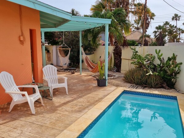 Outdoor pool - Tropical Home-away-from-Home; private, with plungepool & near Palm Beach. COSY! (Noord)