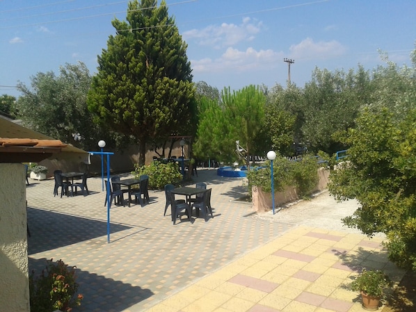 Villa Park Holiday Rooms invites travelers to unwind with complimentary refreshments while children enjoy the playground during parents' well-deserved downtime