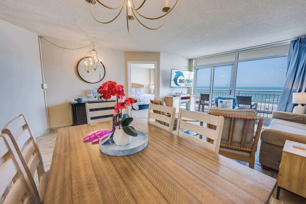 Amazing direct oceanfront views from the balcony are the perfect setting for your morning coffee or evening cocktails. Enjoy the convenience of your own kitchen featuring a full-sized fridge, microwave, and HDTV