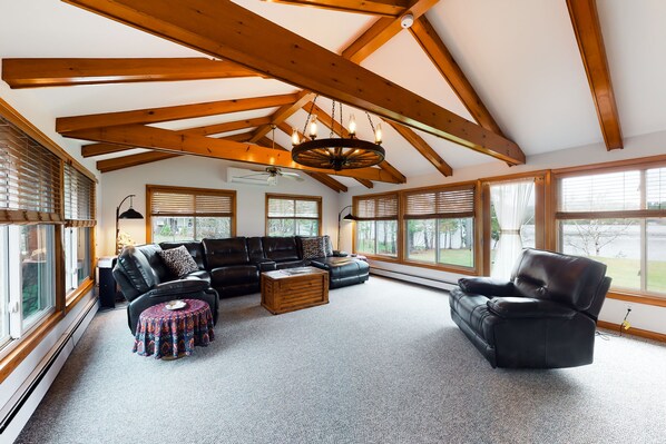 Experience a getaway like no other at this lakefront home that is perfect for your next family adventures! This lovely home was built in the 70s and the owners have held true to the design and maintained the look while including modern features to provide you with the ultimate vacation spot for your family and friends.