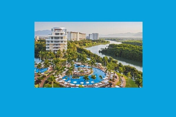 Luxury resort with beaches, pools, golf, and restaurants