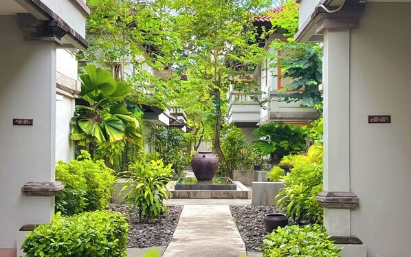 At Grand Whiz Hotel Nusa Dua, unwind in the lush garden or sip cocktails by the poolside bar. Indulge in international cuisine at Anjani Restaurant, treat yourself to spa services like reflexology or relax with sun loungers and pool umbrellas by the outdoor pool.