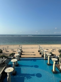A nightclub, a poolside bar and a terrace are just a few of the amenities provided at The Mulia Bali. With a private beach, beachfront dining and sunloungers, this hotel is the perfect place to soak up some sun. For some rest and relaxation, visit the sauna, and indulge in a manicure/pedicure, a body treatment or a facial. At the 5 on-site restaurants, enjoy breakfast, brunch, lunch, dinner and international cuisine. Fitness classes and yoga classes are offered at the gym; The Mulia Bali also has shopping on-site, a coffee shop/cafe and a garden. Stay connected with free in-room WiFi, and guests can find other amenities, such as a playground and a hair salon.